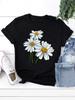 Women's Daisy Print T-shirt Fashion Illustration Tee Simple Design Showing Natural And Elegant Style Suitable for Daily Leisure