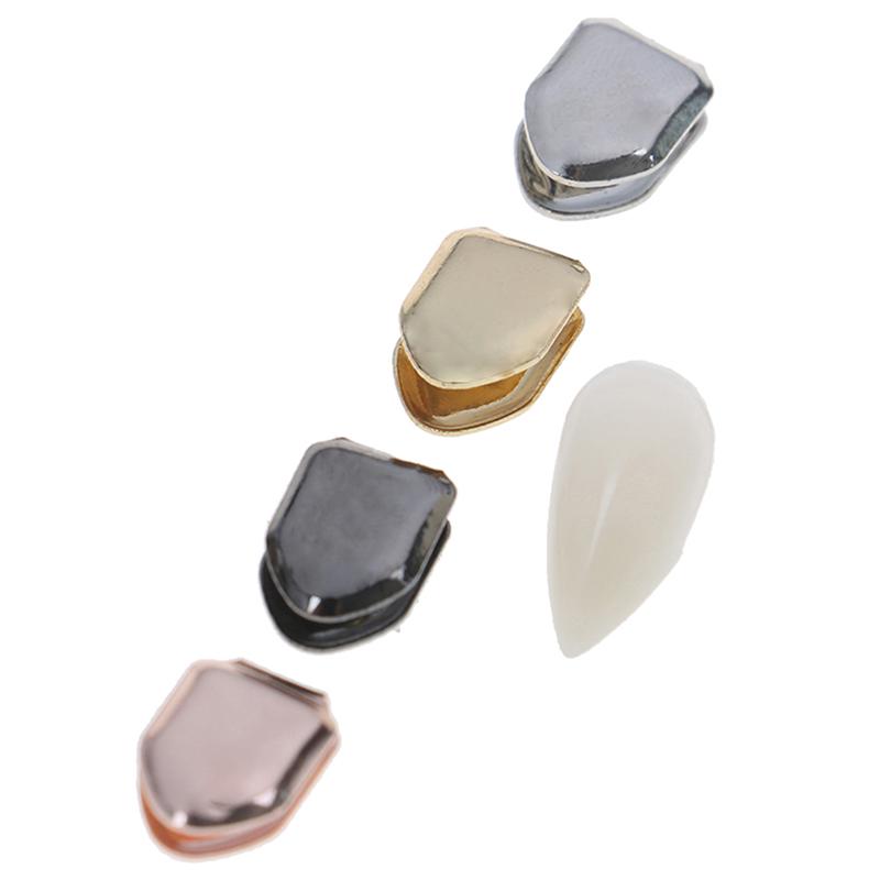 Parrilla de dientes de Hiphop chapada en oro de 14 quilates, tapa de diente pequeña chapada en blanqueamiento falso