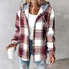 Chaqueta con capucha a cuadros para mujer Abrigo de invierno acogedor, Ropa exterior casual cálida para otoño e invierno
