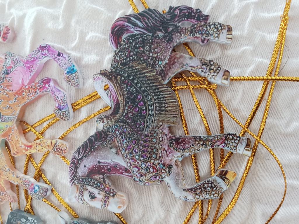Amuleto Ecuestre Hecho a Mano: Hecho a mano con un diseño tradicional de caballo, este adorno es ideal para la decoración del hogar y para preservar momentos especiales con tu caballo. Añade alegría a tu temporada navideña con esta exquisita decoración navideña de caballo.