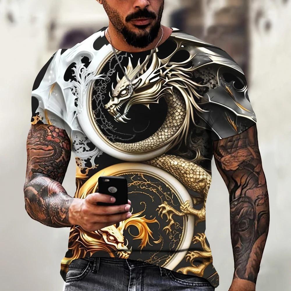 Summer sportswear men's metal dragon T-shirt 3D animal print fashion men's T-shirt casual short sleeved loose oversized top