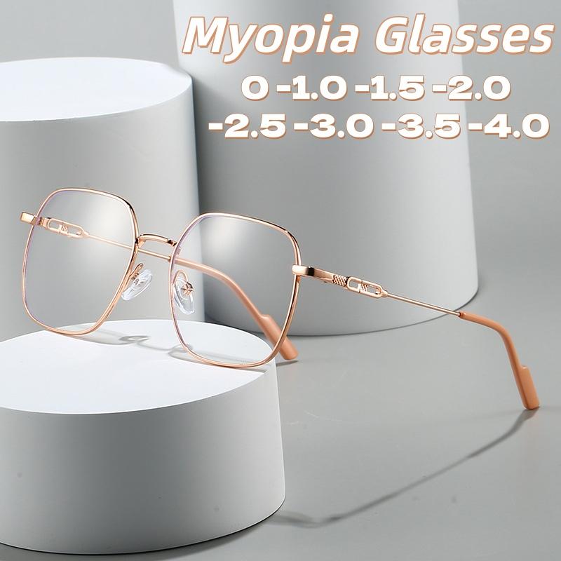Fashionable Retro Gold-rimmed Myopic Glasses Versatile Anti-Blue Light Lenses Unisex Square-framed Myopic Glasses 0 To -4.0