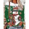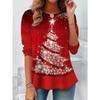 Women's T shirt Crew Neck Long Sleeve Tunic Holiday Sweatshirt Snowman Print Color Block Red