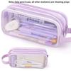 Estuche transparente grande de malla, estuche de lápices de doble capa, de mano, portátil, multifuncional, bolsa de cosméticos, almacenamiento de papelería
