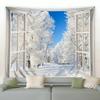 Ventana Exterior Copo de Nieve Bosque Tapiz Invierno Paisaje Tapices Colgante de Pared Decoración de Arte para el Hogar Manta para Dormitorio Sala de Estar
