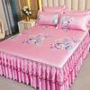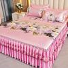 3Pcs/Lot Double Bed Sheet Set Classic Lace Royal Blue Bed Sheet Bed Skirt, Machine Washable Wedding Bedspread Mattress Cover