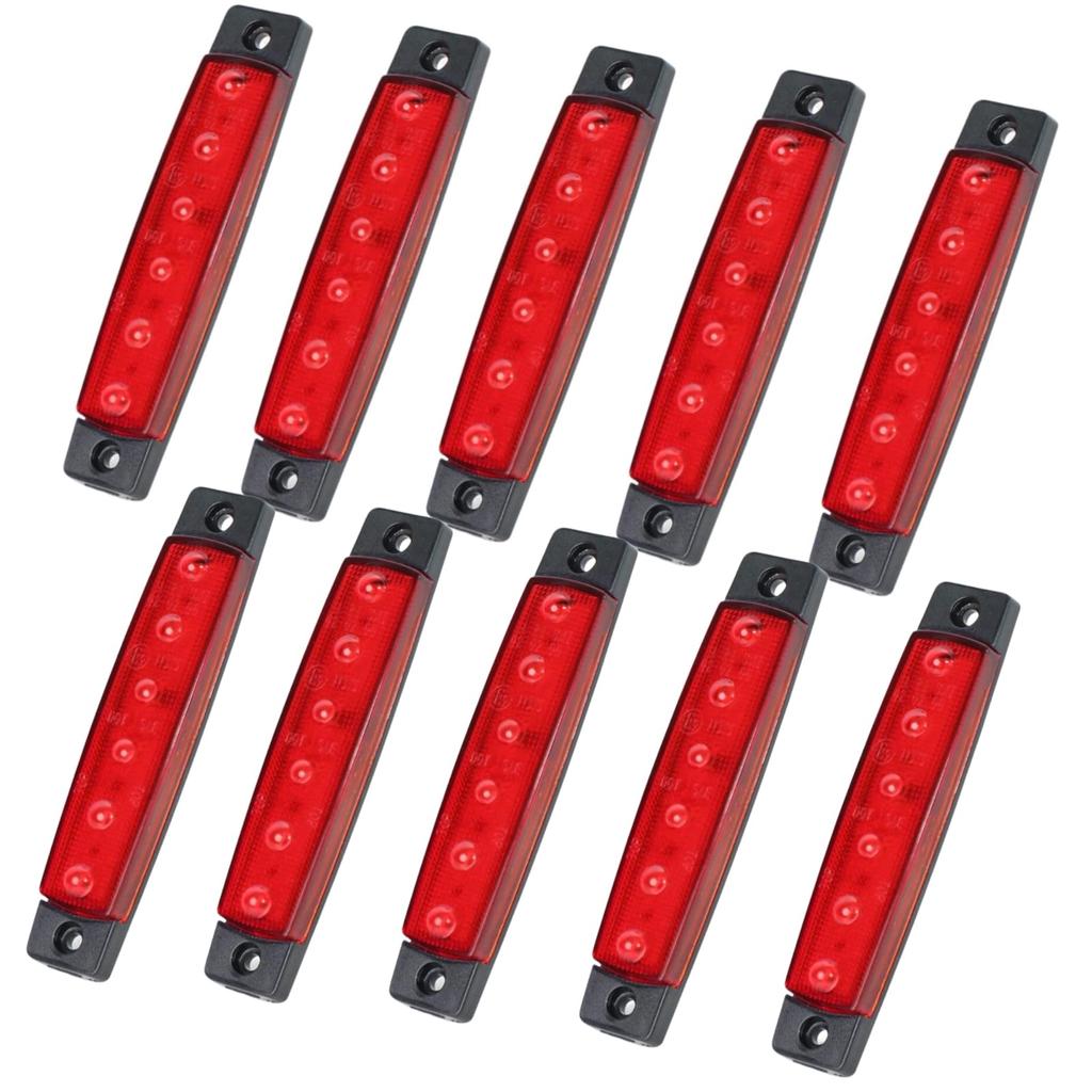10 Pcs 6 Row Truck Trailer One Side Lighting LED Dump Custom Marker Lamp Decor Trays (Red)
