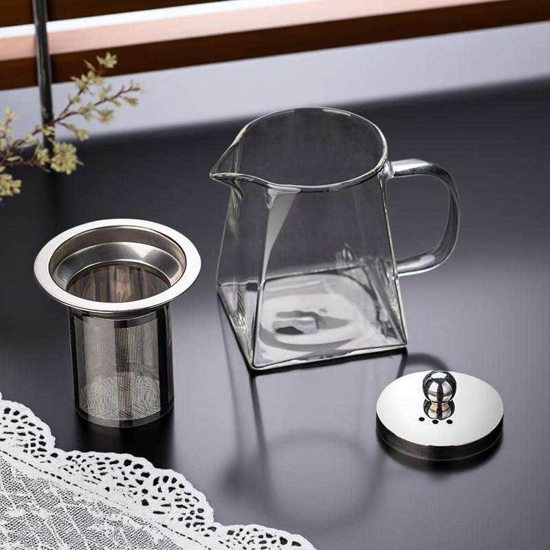 New Heat Resistant Glass Teapot With Stainless Steel Infuser Heated Container Tea Pot Good Clear Kettle Square Filter Baskets