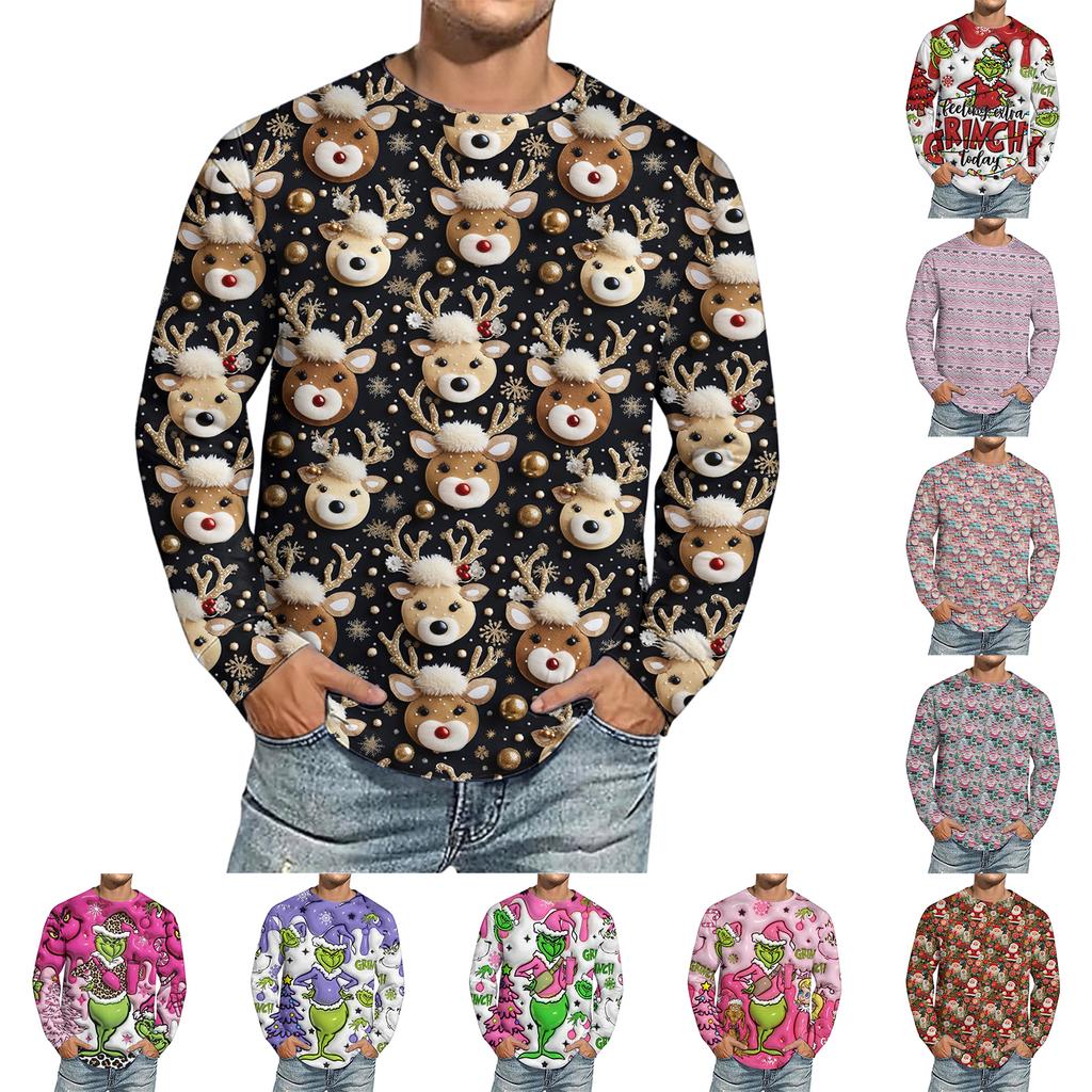 Men's Christmas printed imitation cotton long sleeved shirt Feature: Made with soft and lightweight fabric to enhance comfort Features: Long sleeves, collar, loose fit, flared hem, no positioning print, cute cartoon design Perfect with jeans or leggings; Suitable for daily wear, gatherings, beach outings, vacations, etc Style: Multi functional, elegant, and fashionable. Hand wash in cold water/hang dry Occasion: This pullover is perfect for leisure days, gatherings, campus life, vacations, work, family, dates, and outdoor activities Ideal gift for , husband, son, boyfriend, or oneself Product Season: Spring and Gender: Male Material: Polyester Style: casual and fashionable Collar: Round neck Fit: Regular fit Thickness: Standard instructions: Hand wash in cold water, hang dry Packaging content: 1 top