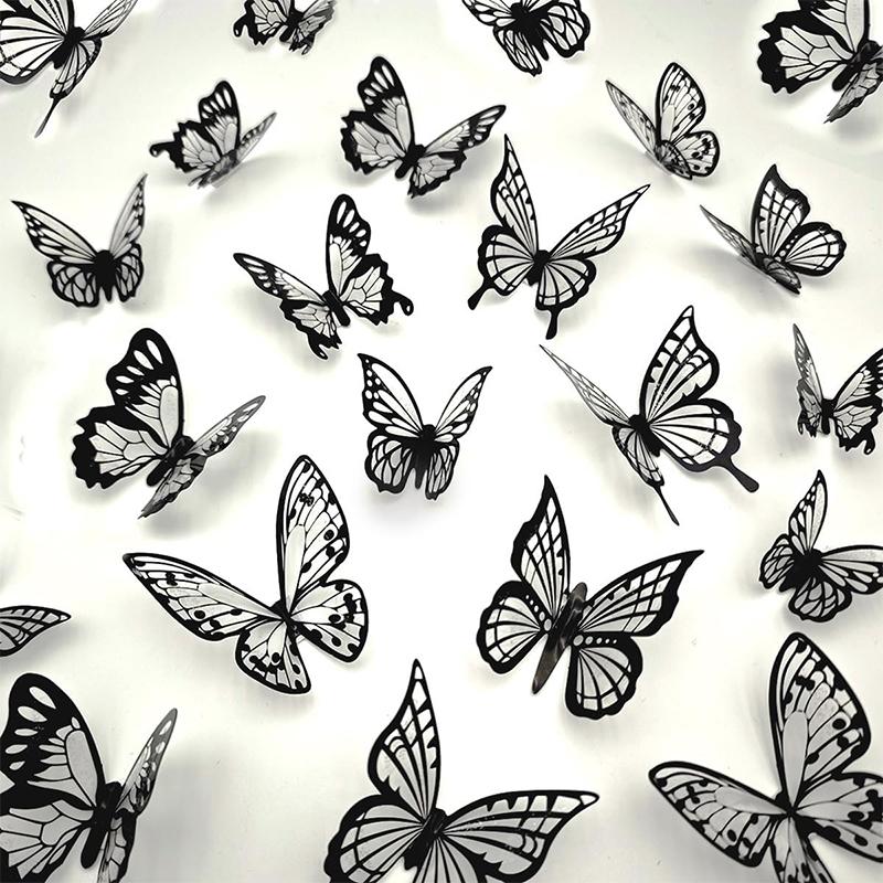20Pcs 3D Retro Butterfly Transparent Black Stickers Holographic Laser Decals for Home Room Birthday Party Decor DIY Supplies