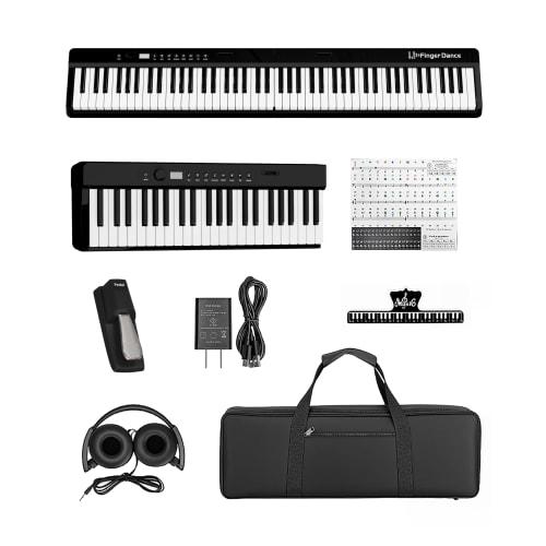 88-Key Folding Digital Piano, Slim Design with Cavity, Weighted Keys, Bluetooth, MIDI, Lightweight, Portable, for Beginners, Includes Pedal and Earpho