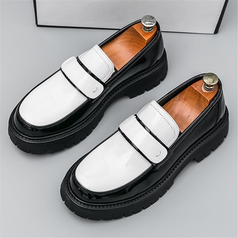 Designer Fashoin New Men Black White Mixed Casual Leather Shoes Male Height Increasing Loafers Wedding Dress Formal Footwear