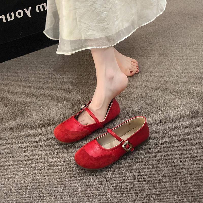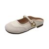 Soft-soled Mary Jane shoes round head shallow mouth Spring commuting versatile word with flat bottom half slippers women's comfort