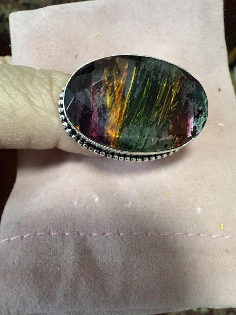 Gema Ammolita Plata de Ley 925 Joyería Anillo Talla 7