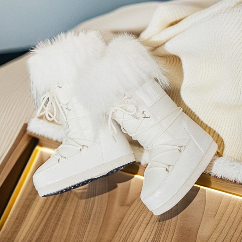 Moon MOOON thick-soled inner height increase snow boots women's 2025 winter thickened warm waterproof cotton boots non-slip tube mouth hair