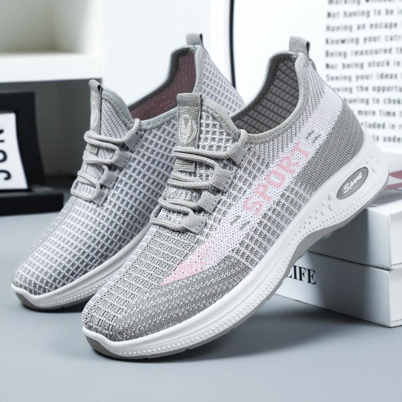 Shoes women's autumn breathable versatile not tired feet running shoes flying woven mesh design soft sole comfortable casual sports shoes