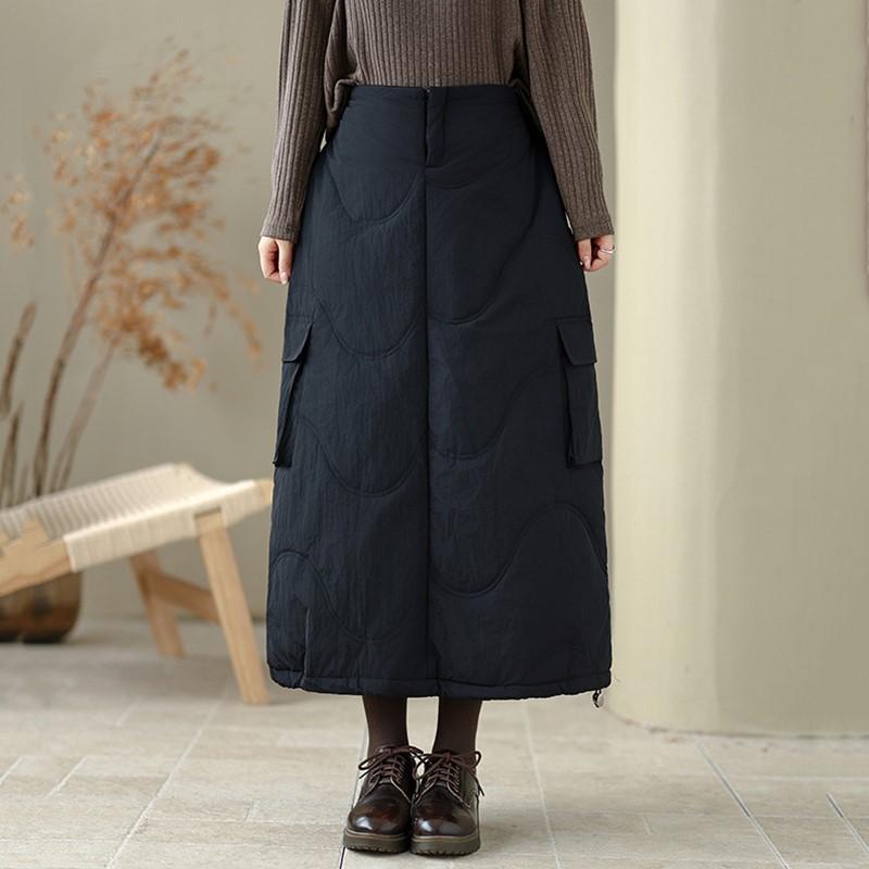 Faldas de algodón acolchadas de talla grande, de cintura alta, vintage, para primavera, otoño e invierno, informales, sueltas, largas, para mujer