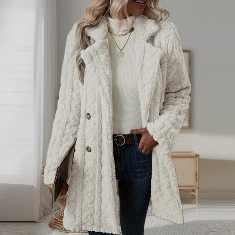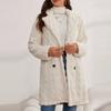 Women Thick Woolen Coats Double Breasted Solid Warm Jackets Midi Length Coat Turn Down Collar Casual Straight Jacket Winter