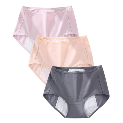 RUOXIAO Sanitary Panties, 100% Cotton, Moisture-Absorbent, Underwear, Soft, Stretchy, Breathable, Waterproof, 3-Pack