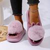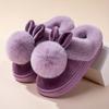 2025 Nuevas Pantuflas Cálidas de Otoño e Invierno con Diseño de Orejas de Conejo de Bola Única para Hombre y Mujer - Zapatillas de Casa para Parejas con Suela Gruesa y Parte Trasera Semicerrada