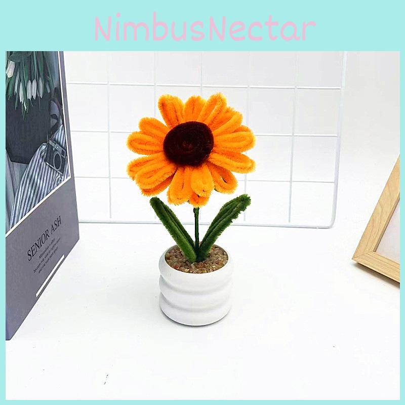 Rod Twisted Plush Sunflower Potted Desktop And Office Decoration Ornament