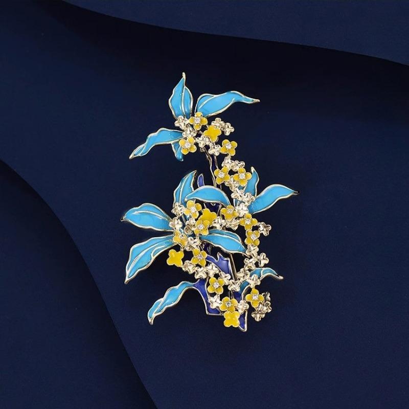 Retro Osmanthus Blue Fragrance Brooch, High-end Women's Exquisite and Light Luxury Osmanthus Brooch, Niche Design Sense Brooch