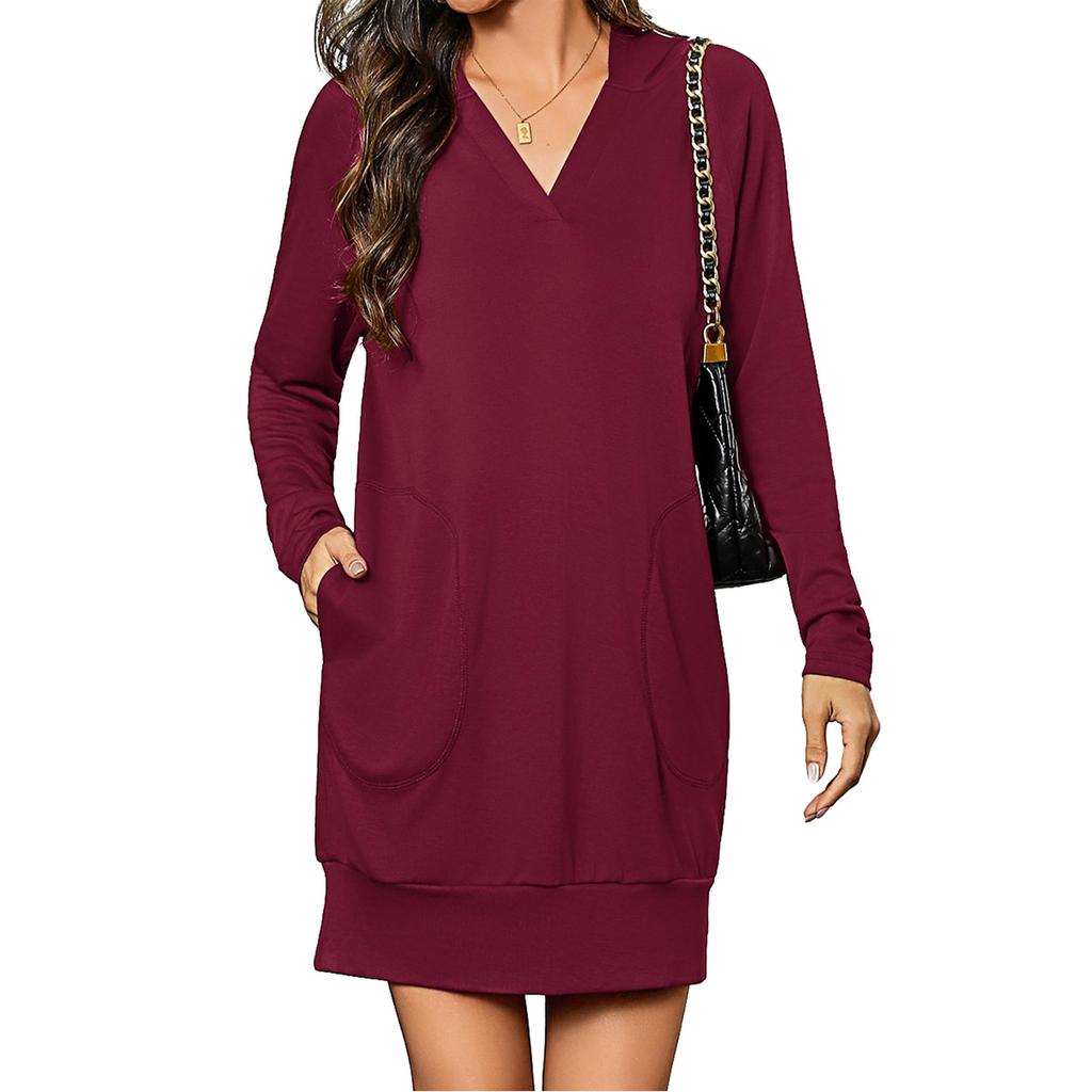 Wome's Oversized Hooded Dress For Women, Casual, Long Sleeves, V-neck, Hoodie With Pockets