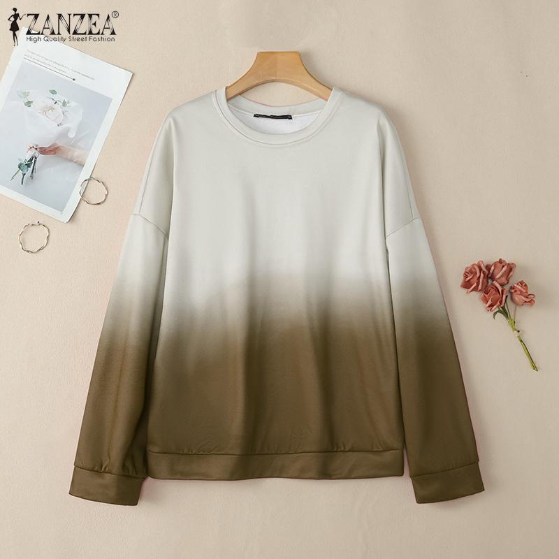 ZANZEA Women Casual Round Neck Gradient Print Long Sleeve Autumn Blouse