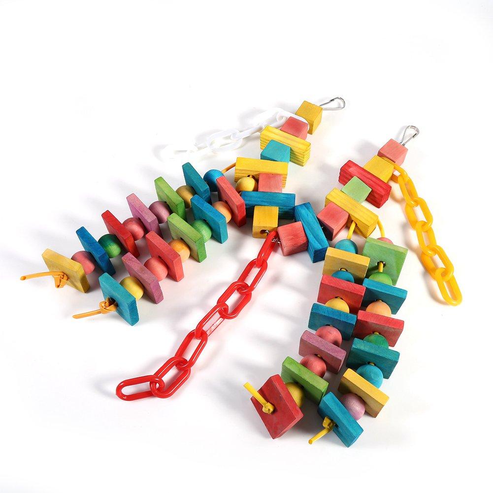 Colorful Parrot Cage Wood Chew Bite Toys Pet Bird Hanging Swing Scratcher Perch