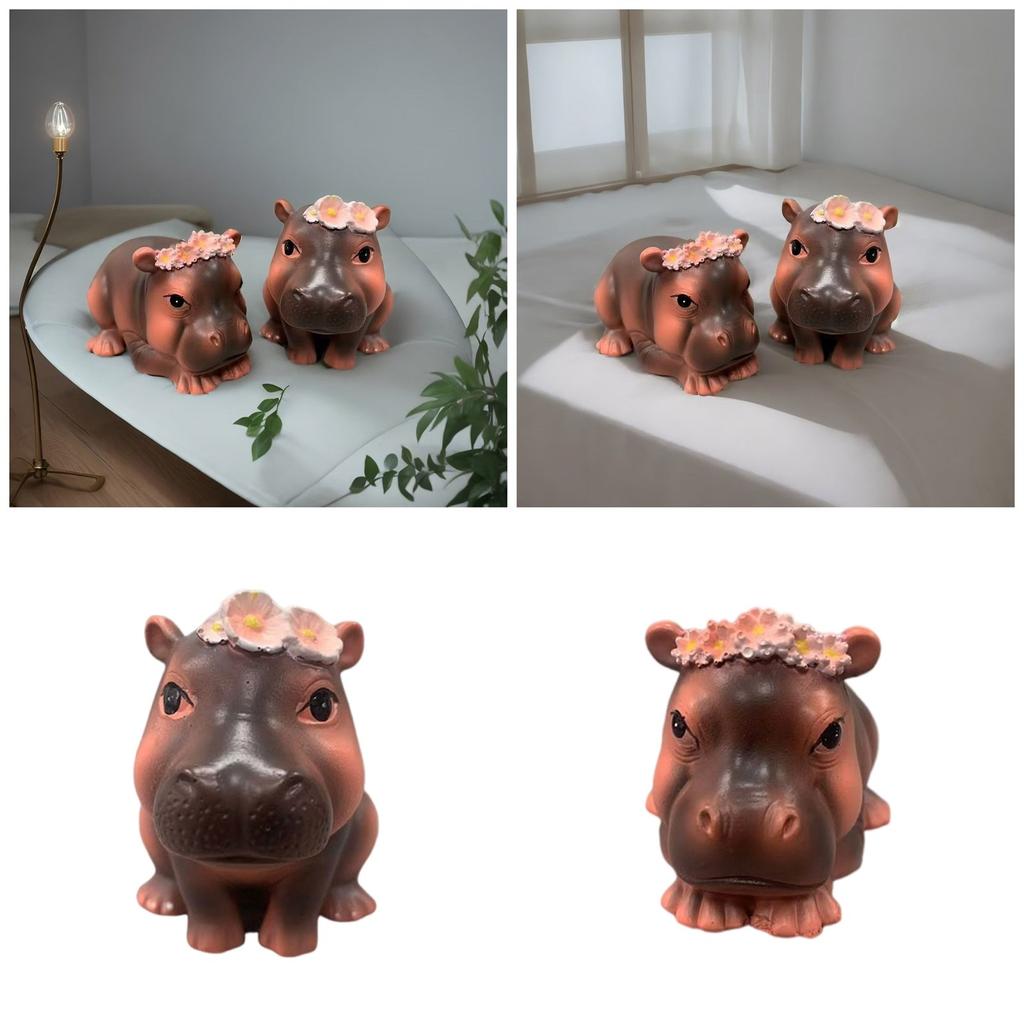 Cute Decorative Hippo Baby Statue Resins Pygmy Hippo Figurine Miniature for Living Room and Nursery Bedroom Decoration