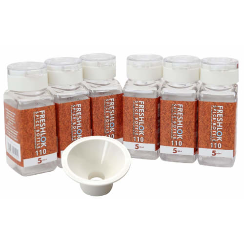 Official Takeya Spice Bottles, Set of 6, 110ml, 5-Hole, with Funnel, FRESHLOK Airtight Storage Containers, Airtight, Refrigerator-Safe, for Spices, Se