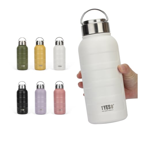 TYESO Vacuum Insulated Water Bottle, Thermos, Mug, Direct Drinking, Stainless Steel, Double-Walled, Wide Mouth, with Handle, for Adults and Children,