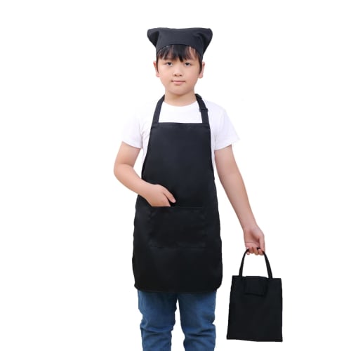 cozycube Kids Apron Set with Triangle Scarf and Drawstring Bag, Wrinkle-Resistant, Elementary School Age, Solid Color, Simple Design, Easy to Put On a