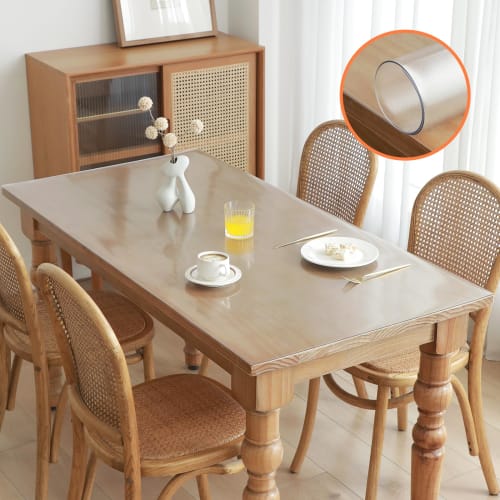- Transparent PVC Tablecloth Features: Waterproof and oil resistant, high temperature resistant, heat resistant up to 85℃, easy to clean and prevent table wear, moderate thickness, reduces shock and noise when placing dishes and cups.