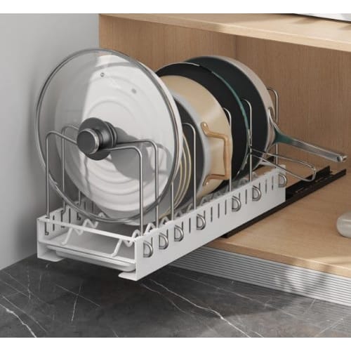Gevvnss Frying Pan Rack with 12 Compartments for Under-Sink Storage, Large Capacity Kitchen Storage Rack with Draining Platform, Pot Stand, Frying Pan