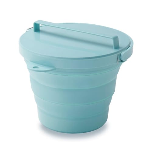 ISETO Foldable Bucket, 8L with Lid, Mint Green, 32.8cm W x 30.0cm D x 8.1-25.7cm H, Made in Japan, Foldable with Lid, Large Capacity, Compact, Slim, C