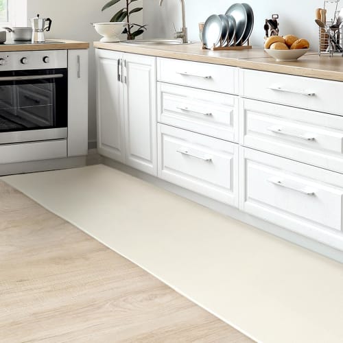 cr?er Low-Rebound Wipe-Clean Kitchen Mat, 240 x 60cm, Anti-Wrinkle, Wide Coverage, Ivory