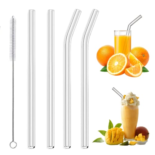 aninako Set of 4 Glass Straws, Heat-Resistant, Reusable, 20cm Tall, for Frozen Sparkling Tea, Heat-Resistant, Safe, Non-Toxic, Includes Cleaning Brush