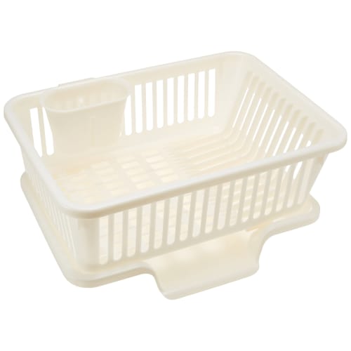 Sanko Plastic (Made in Japan) Dish Drainer, Ryu No.1, Vertical, with Chopstick Holder, Pearl White