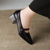 Premium sense shallow mouth new pointed high heels women's retro camellia one-word buckle temperament versatile Mary Jane single shoes