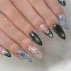 24 Piezas Uñas Postizas Almendra Lujo Retro Patrones de Mariposa Dorada Verde Oscuro Uñas Falsas Francesas para Mujeres Manicura de Uñas Portátil