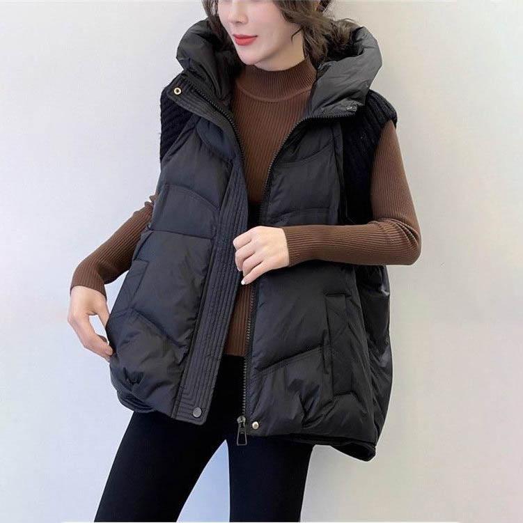 Chaqueta de Mujer Acolchada Parkas Cortavientos Ligera con Capucha Cálida Chaleco Femenino Plumón de Pato Blanco Abrigo de Plumón Sin Mangas