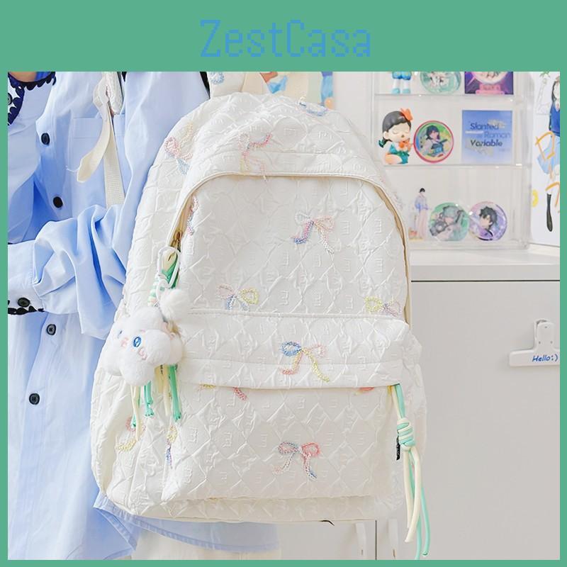 Print Backpack Bowknot With Comfortable Shoulder Straps For School And Outings