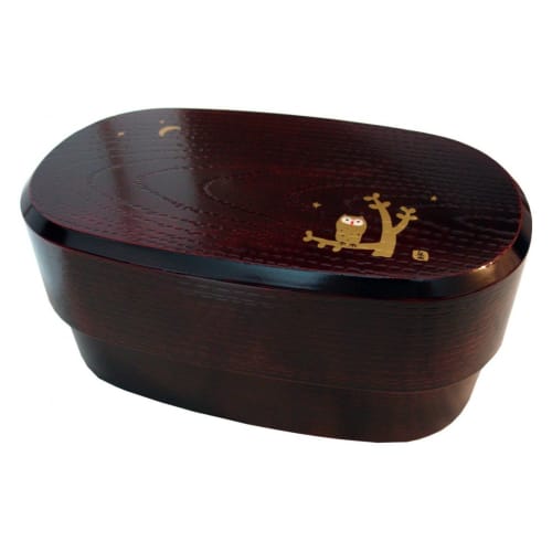 HAKOYA Range Club Men's Oval Wood Grain Lunch Box, Tochigi Owl Design, 51120