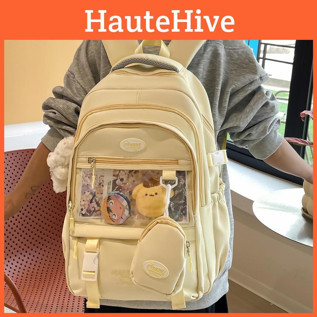 Color Simple Solid Letter Embroidery Student Backpack With Pendant And Badge