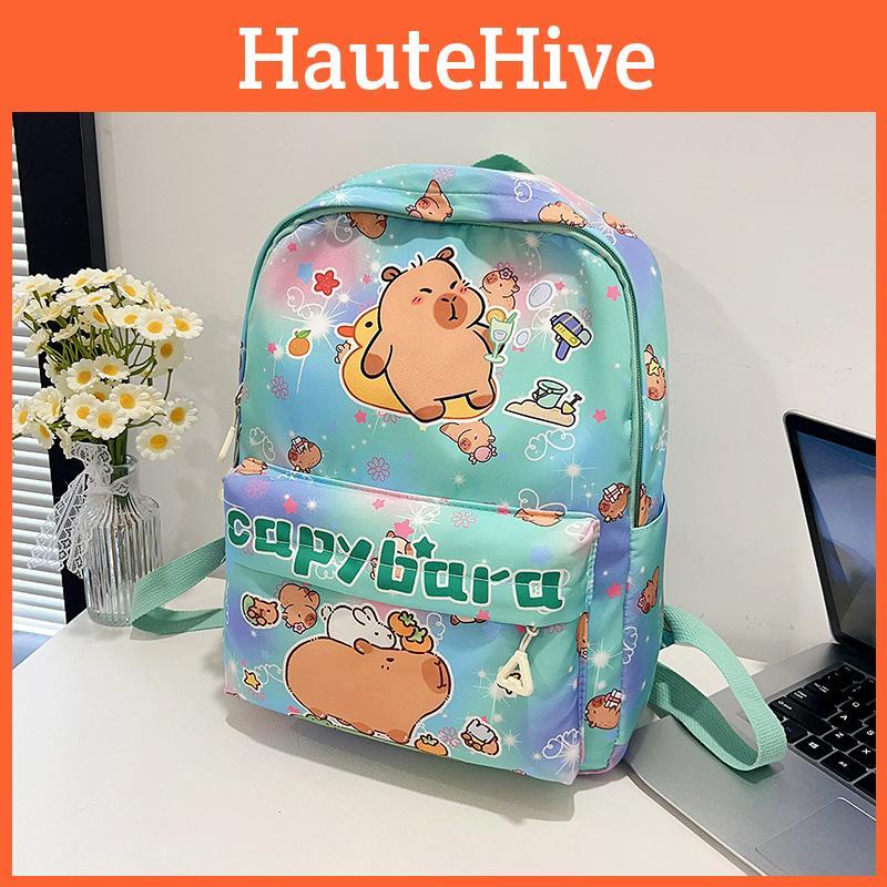 Cute Cartoon Capybara Car Bath Singing Printed Children Large Capacity Backpack
