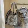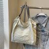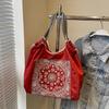 Women Fashion Embroidered Cashew Flower Nylon Shoulder Bag Casual Polyester Lining No-Closure Shopping Tote Bag CLE