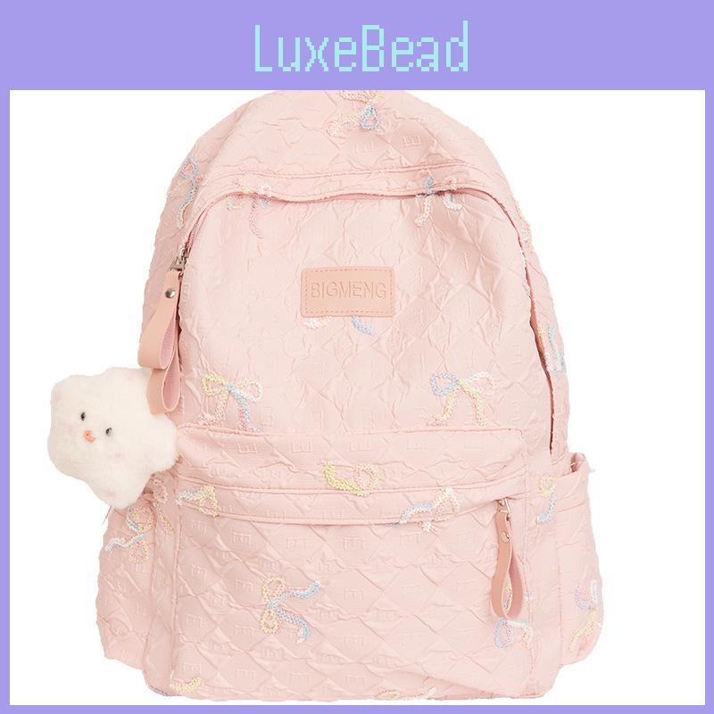 School Minimalist Nylon Backpack With Bow Embroidery Design For Teens Daily