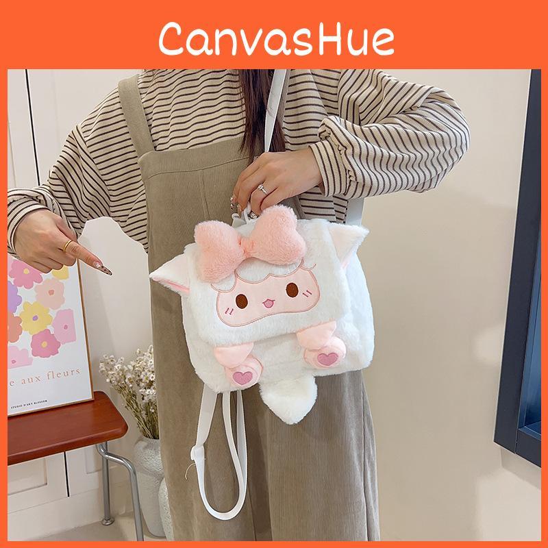 Little Lamb Penguin Bowknot Cartoon Pattern Plush Backpack Girls Crossbody Bag