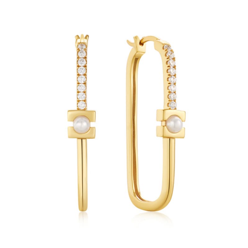 ANIA HAIE Pearl Modernist Oval 925 Silver Hoop Ring Earrings E054-06G